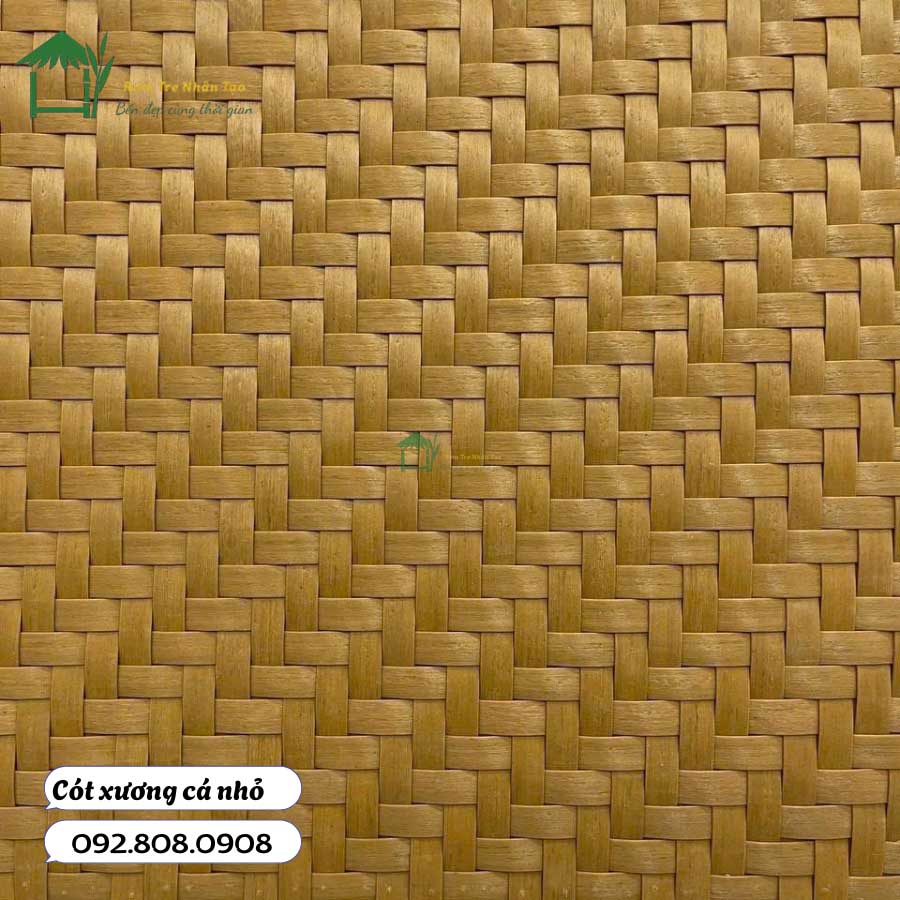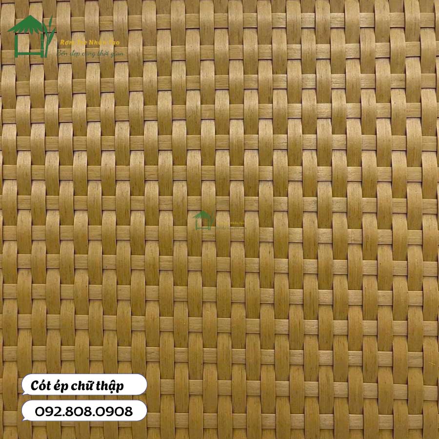 Tên mẫu Độ rộng/Dày nan Màu sắc Đặc điểm Ứng dụng nổi bật Đan xương cá nhỏ 0,8 cm Vàng óng Họa tiết tinh xảo, tạo cảm giác mềm mại, sang trọng. Ốp trần quán cà phê, vách ngăn resort, trang trí homestay Đan chữ thập 0,8 cm Vàng óng Kiểu đan cân đối, chắc chắn, bề mặt đều đẹp. Vách ngăn nhà hàng, ốp tường nhà chòi, trần phòng khách Đan xương cá lớn – Nâu đỏ 1,2 cm Nâu đỏ trầm Nan to, khỏe khoắn, tạo sự ấm áp và cổ kính. Ốp tường ngoài trời, trang trí sân khấu, hội trường Đan xương cá lớn – Vàng trơn 1,2 cm Vàng tươi sáng Nan lớn nổi bật, màu sáng tạo không gian rộng rãi, thông thoáng. Ốp trần nhà hàng lớn, khu nghỉ dưỡng Đan xương cá lớn – Vàng sùi vân mốc 1,2 cm Vàng pha vân mốc độc đáo Tạo cảm giác cũ kỹ như nhuốm màu thời gian, rất phù hợp cho phục dựng công trình cổ. Phục dựng di tích, trang trí quán phong cách vintage Cót phên tre nhân tạo Nan dày 0,2 cm mỗi sợi Nâu đỏ cổ điển Dùng ngoài trời, chống mưa nắng, bền bỉ nhiều năm, giữ vẻ đẹp truyền thống. Phối với rơm nhân tạo để phục dựng di tích, làm hàng rào ngoài trời
