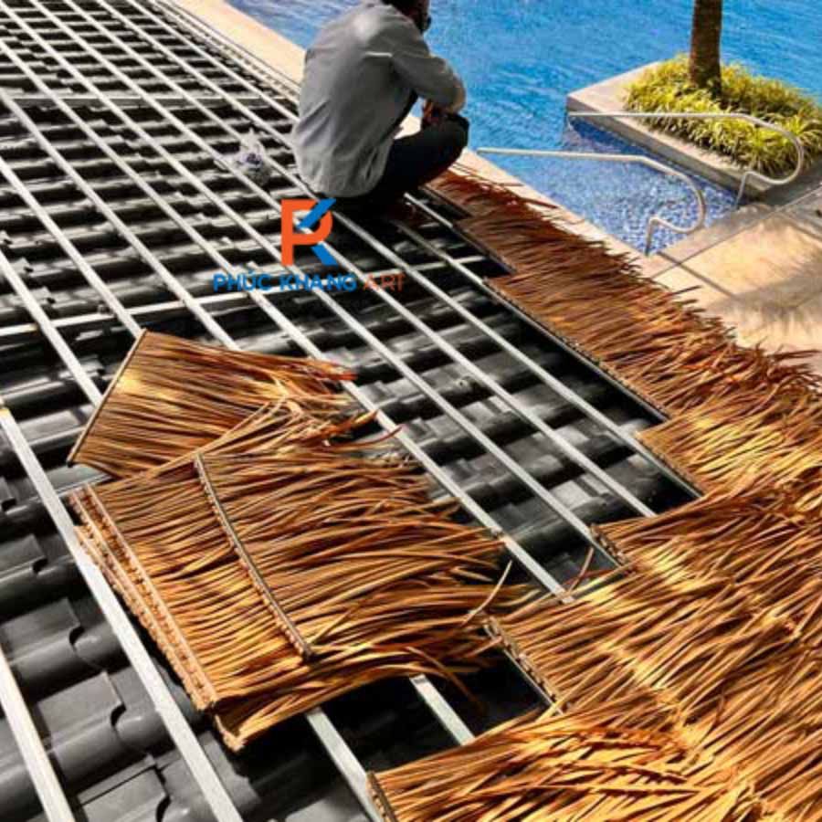 Với mái resort, homestay cao cấp: nên dùng loại rơm bản to, lớp phủ dày, chống mưa tốt, bền trên 10-15 năm.