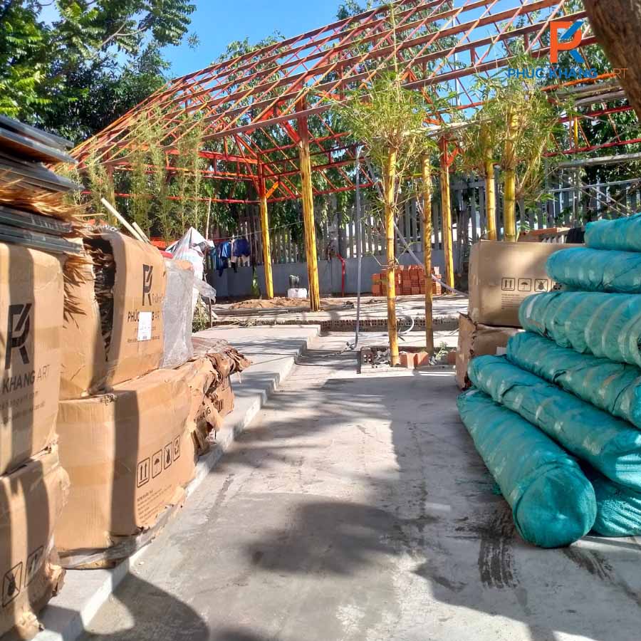 Rơm nhân tạo tại dự án cũng được sản xuất từ nhựa nguyên sinh HDPE, có độ bền cao, kháng tia UV, chống mối mọt và không bị ẩm mốc – giúp công trình luôn giữ được vẻ đẹp ban đầu trong thời gian dài.