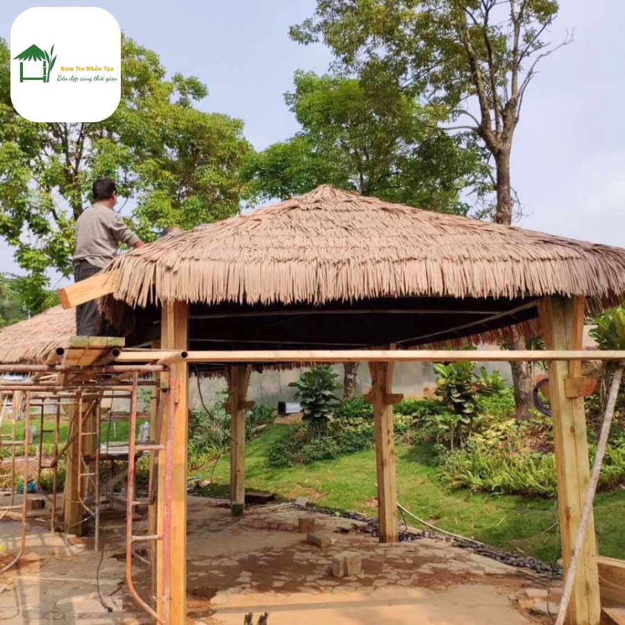 💡 Như vậy, rơm nhân tạo không chỉ giúp tiết kiệm chi phí lâu dài mà còn đảm bảo tính thẩm mỹ ổn định, đặc biệt khi sử dụng trong chòi rơm trang trí resort hoặc quán cà phê.