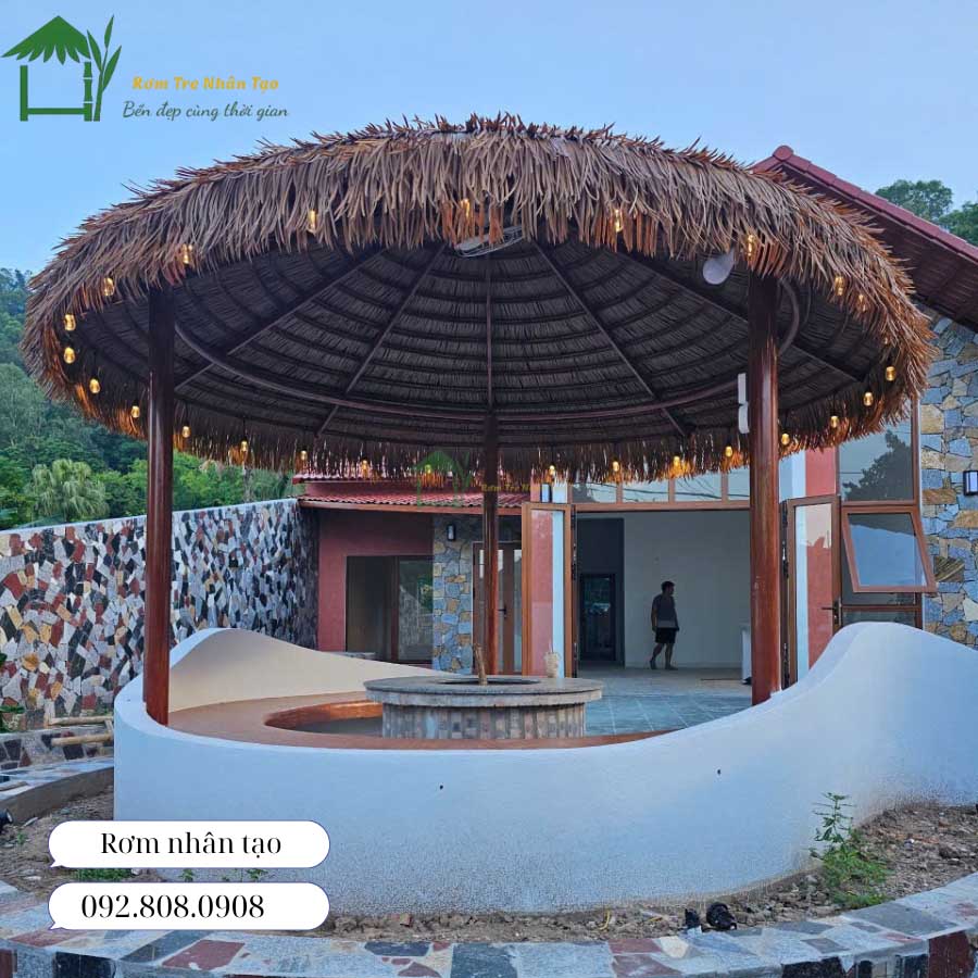 - Lợp rơm nhân tạo dày ít nhất 3 lớp để đảm bảo độ che nắng, chống mưa.