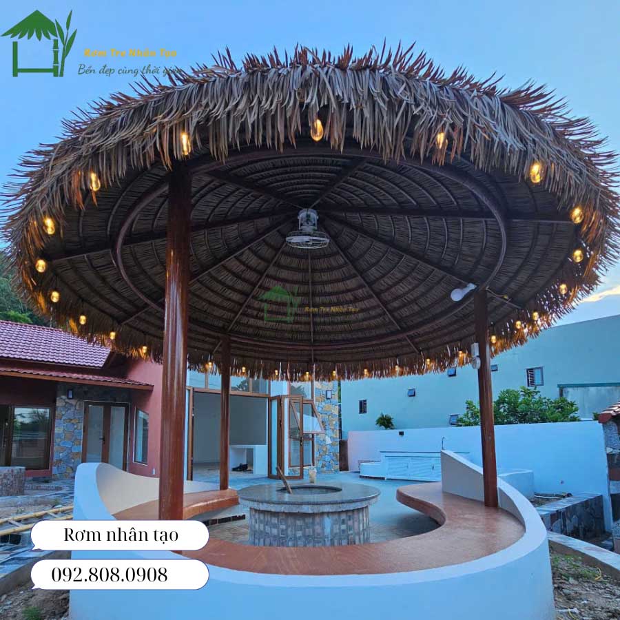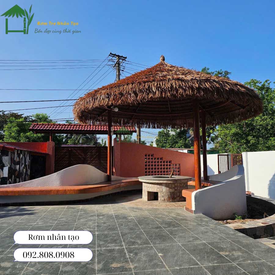 Tuy mái rơm thật mang chất dân dã rõ nét, nhưng lại bị giới hạn bởi độ bền và tính ứng dụng. Ngược lại, rơm nhân tạo là lựa chọn đang lên ngôi bởi hàng loạt ưu điểm vượt trội:
