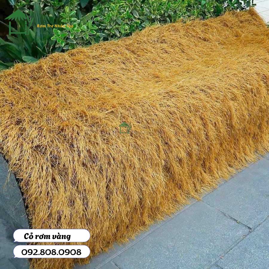 Điểm đặc biệt, cỏ rơm vàng hiện nay chủ yếu được sản xuất từ nhựa tổng hợp cao cấp (hay còn gọi là cỏ rơm nhựa), giúp tăng độ bền, khả năng chống nắng mưa và giữ màu sắc tươi mới nhiều năm liền.