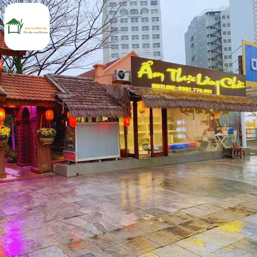 Công trình Ẩm Thực Làng Chài – Hạ Long là ví dụ tiêu biểu cho việc ứng dụng rơm nhân tạo vào kiến trúc du lịch hiện đại. Với độ bền cao, khả năng chịu nắng mưa tốt, an toàn và thẩm mỹ, rơm nhân tạo đã giúp công trình giữ trọn vẻ đẹp truyền thống mà vẫn phù hợp thời đại.