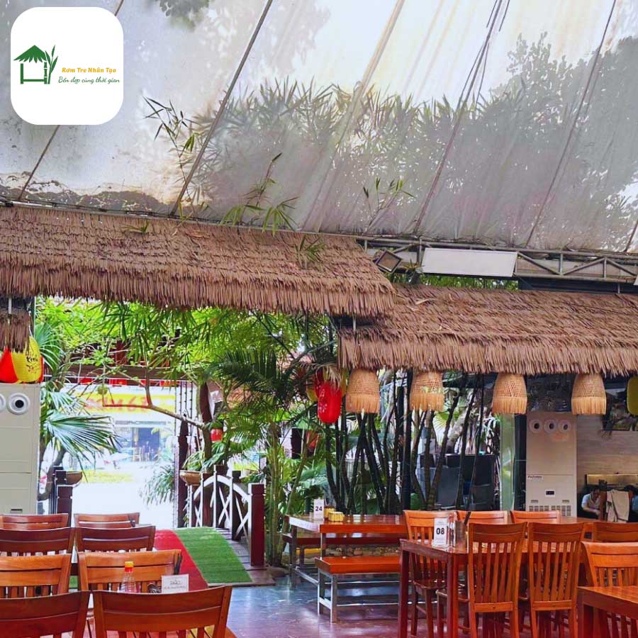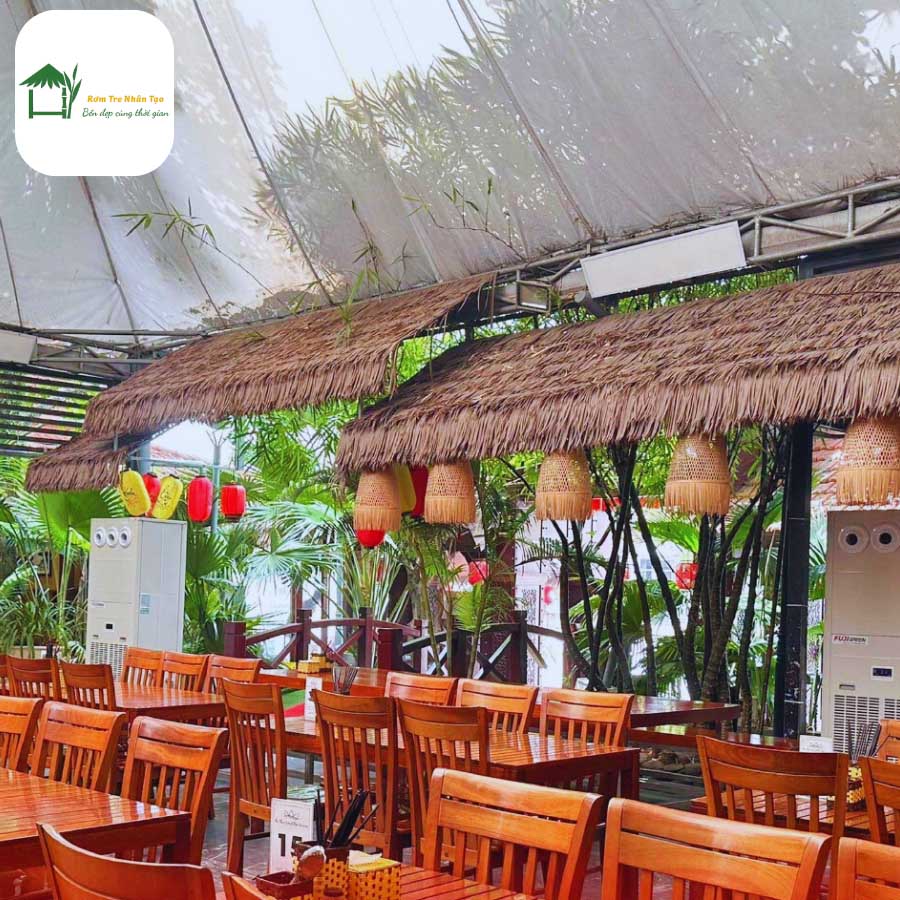 Với một công trình phục vụ lượng khách lớn như Ẩm Thực Làng Chài, rơm thật không đáp ứng được yêu cầu vận hành lâu dài.