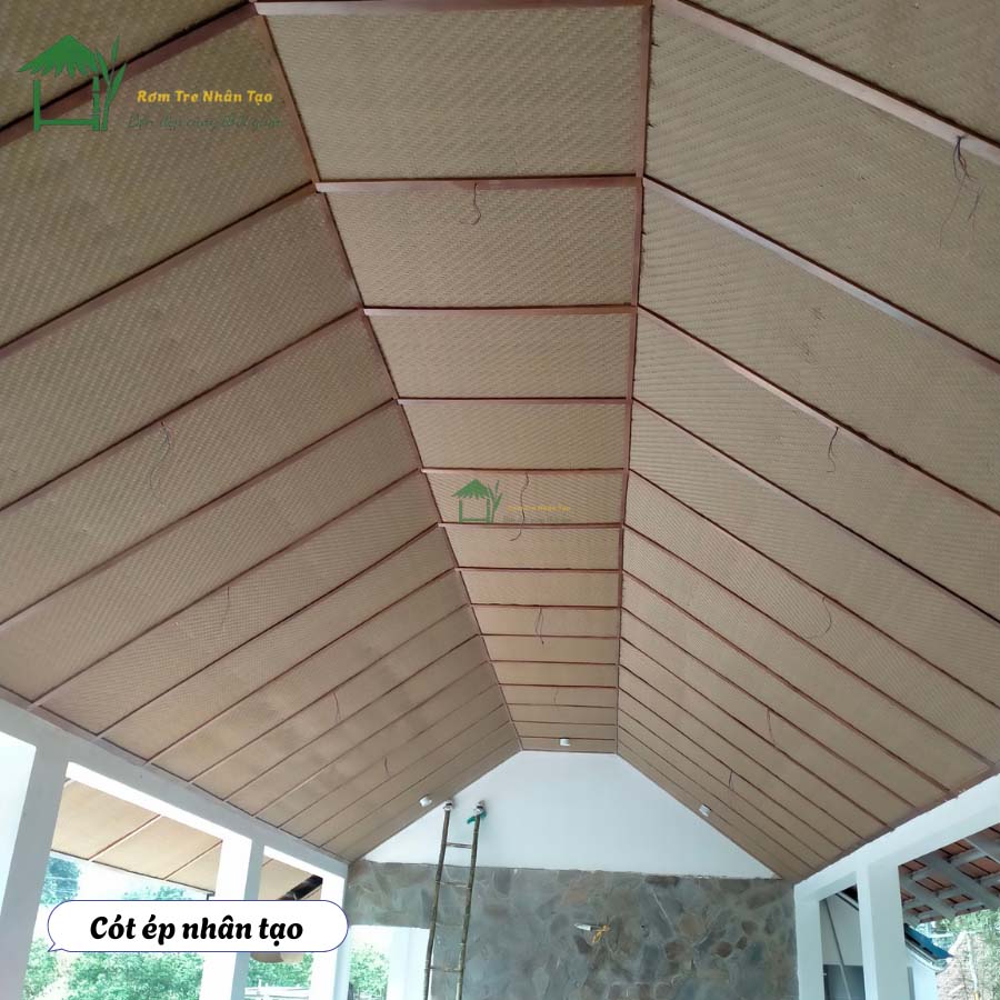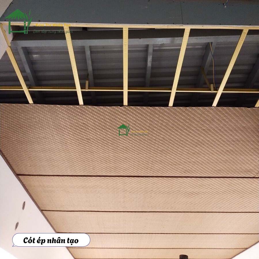 Thi công cót ép nhân tạo đơn giản, nhanh chóng, có thể lắp đặt trên trần tôn, bê tông hoặc tường sắt hộp.