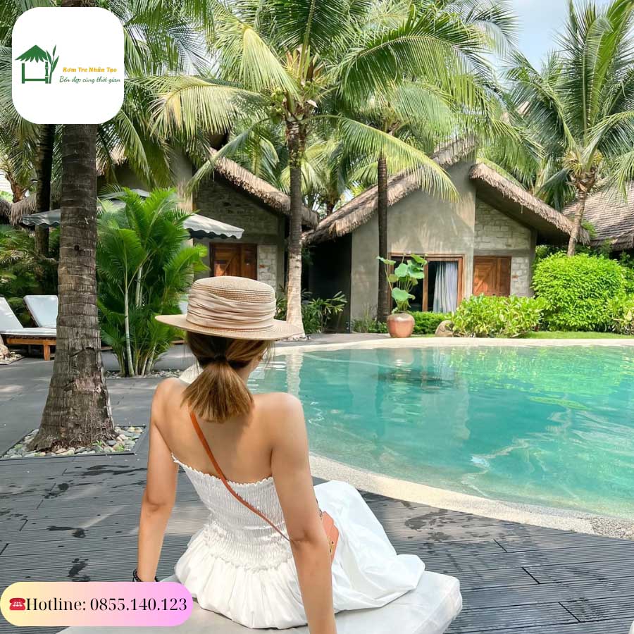 Mái lá nhân tạo (bao gồm mái rơm nhân tạo, mái lá dừa nhân tạo) hiện là xu hướng decor được các resort, quán cafe và homestay ưa chuộng nhờ độ bền vượt trội và vẻ đẹp tự nhiên. Với chất liệu nhựa HDPE cao cấp