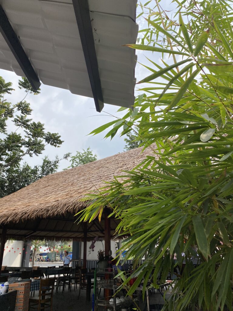 Nhà hàng Vạn Phúc là một trong những công trình tiêu chuẩn kết hợp giữa kiến trúc truyền thống và vật liệu hiện đại, mang lại không gian thân thiện với thiên nhiên nhưng vẫn đảm bảo độ bền và thẩm mỹ của rơm nhân tạo và cót ép nhân tạo.