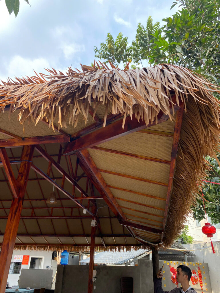Mái: Rơm nhân tạo kháng UV, màu vàng cháy