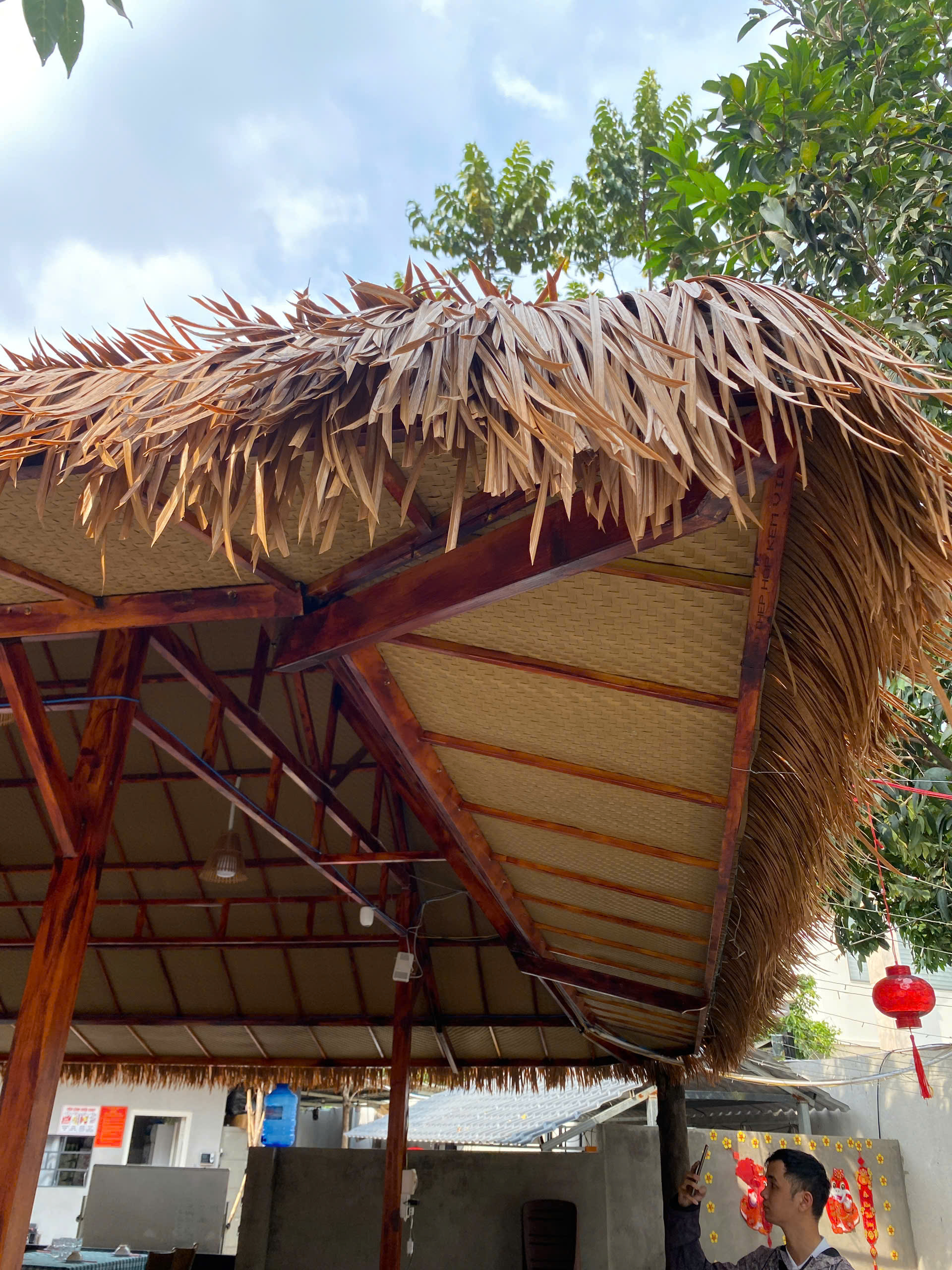 Sự Kết Hợp Giữa Rơm và Cót Ép Nhân Tạo: Sự phối hợp tinh tế giữa rơm nhân tạo và cót ép nhân tạo mang đến vẻ đẹp mộc mạc đậm chất thiên nhiên, đồng thời đảm bảo độ bền vượt trội và khả năng chống chịu thời tiết. Đây là giải pháp lý tưởng cho các công trình nhà hàng, resort, quán café hay khu nghỉ dưỡng theo phong cách xanh, tạo nên không gian gần gũi, thư thái và giàu tính nghệ thuật.