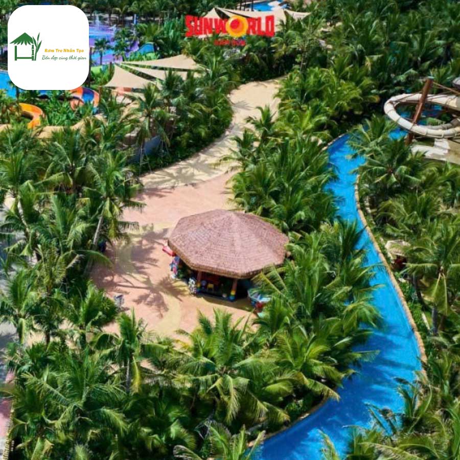 Khám phá công trình rơm nhân tạo tại Sun World Sầm Sơn – Thanh Hóa, nơi rơm nhân tạo được ứng dụng trong thiết kế mái resort và tiểu cảnh trang trí. Vật liệu rơm nhân tạo mang đến vẻ đẹp tự nhiên, bền bỉ, chống nắng mưa và giữ phong cách nhiệt đới đặc trưng cho không gian nghỉ dưỡng.