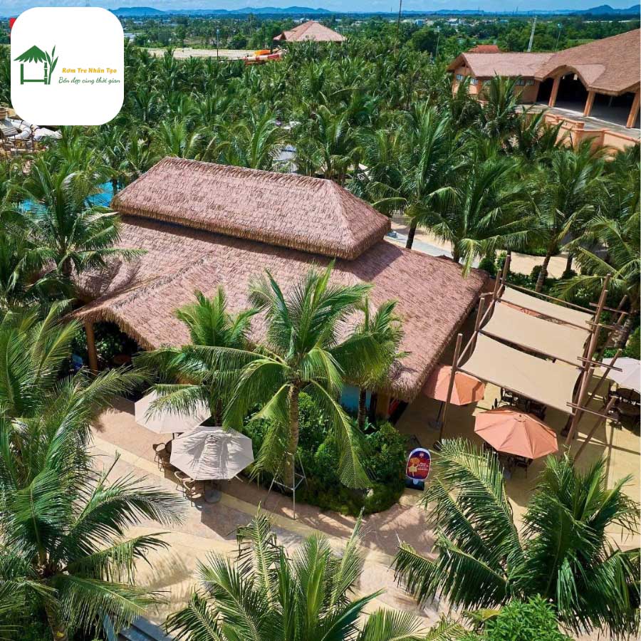 Kết luận: Với các dự án resort, khu du lịch biển, hay nhà hàng theo phong cách tropical, rơm nhân tạo là lựa chọn tối ưu, giúp duy trì hình ảnh sang trọng và chi phí vận hành thấp.