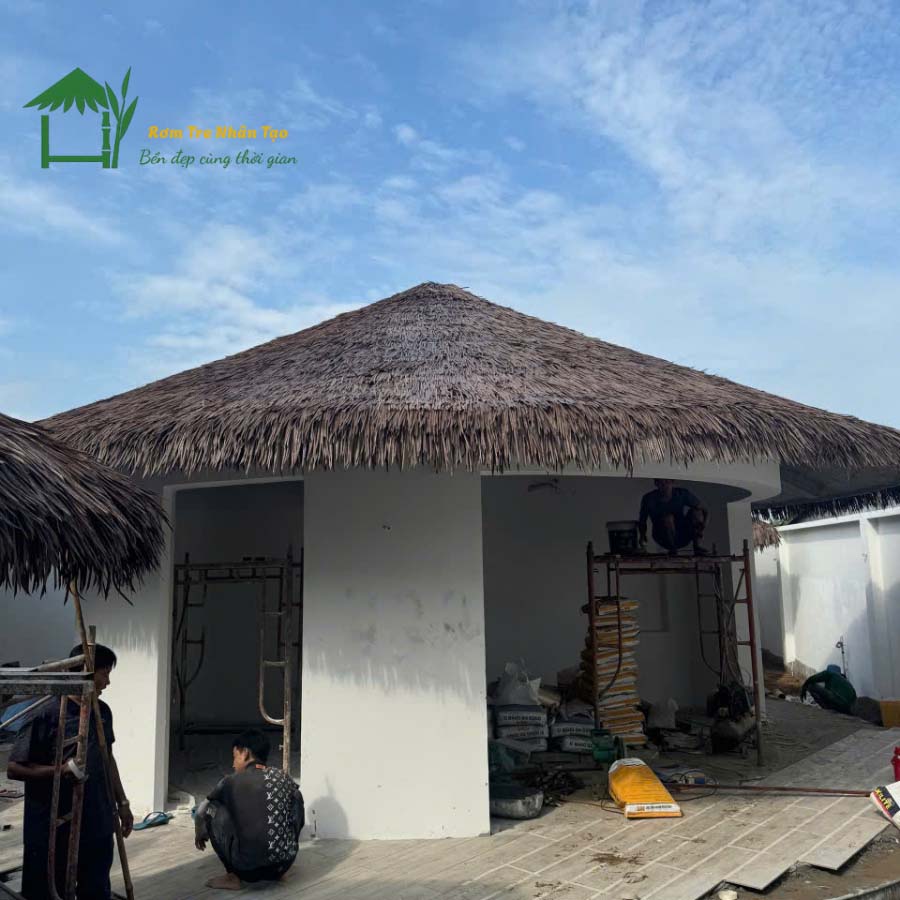👉 Đây là lý do khiến nhiều dự án nghỉ dưỡng, nhà hàng sinh thái và khu du lịch chuyển từ rơm thật sang rơm nhân tạo.