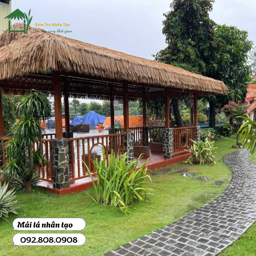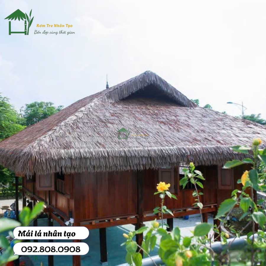 Rơm nhân tạo: Thay thế mái rơm, mái tranh truyền thống, mang vẻ đẹp mộc mạc nhưng bền tới 15–20 năm, chống mối mọt, chống cháy.