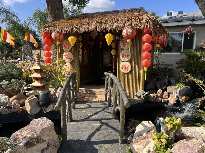 Trong các thiết kế sân vườn, tấm ốp tre nhân tạo dùng để ốp nền – vách sau tiểu cảnh hoặc hòn non bộ giúp tạo phông nền tự nhiên, mang phong cách Á Đông rõ nét, phù hợp với thiền viện, khu nghỉ dưỡng, biệt thự nhà vườn.