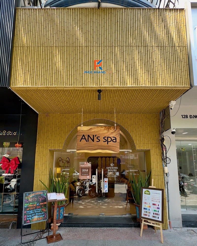 Tấm ốp tre nhân tạo được sử dụng để ốp mặt tiền nhà hàng, homestay, resort, showroom, tạo hiệu ứng tự nhiên, gần gũi nhưng vẫn rất nổi bật. Với khả năng chịu nắng mưa, không bạc màu, đây là giải pháp vừa thẩm mỹ vừa bền vững cho các công trình ngoài trời.